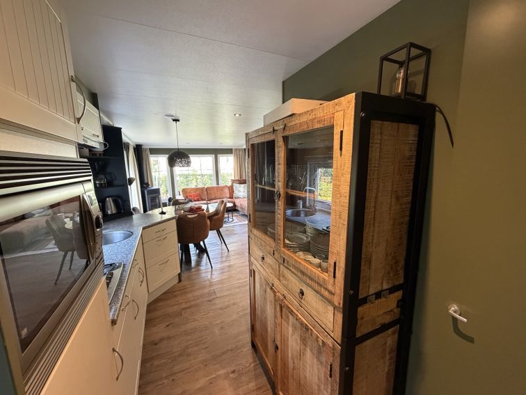 - Keuken voorzien van combi-oven, gasfornuis, afzuigkap, koelkast en een ruime servieskast